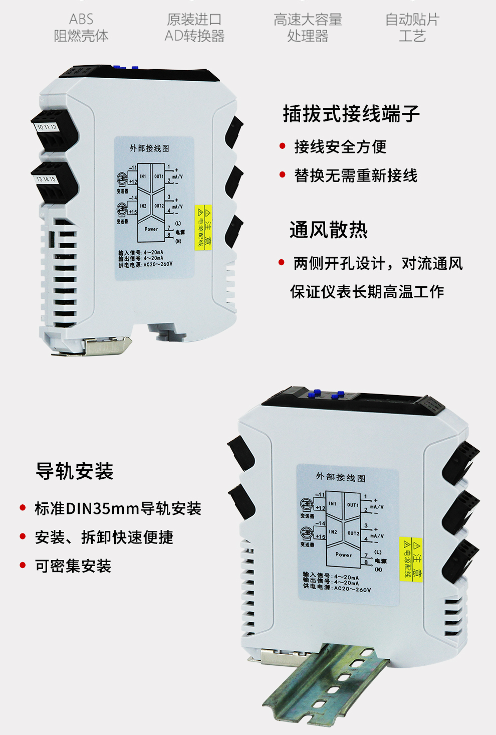• OHR-X33系列導軌式智能配電器給二、三線制變送器提供隔離的電源電壓,將變送器產生的直流電壓電流信號,經本隔離器轉換成所需的輸出信號至控制系統。寬電源設計:20-260V交直流供電。配置高清顯示單元,通過輕觸按鍵設置每個通道的參數及每個通道之間的切換。